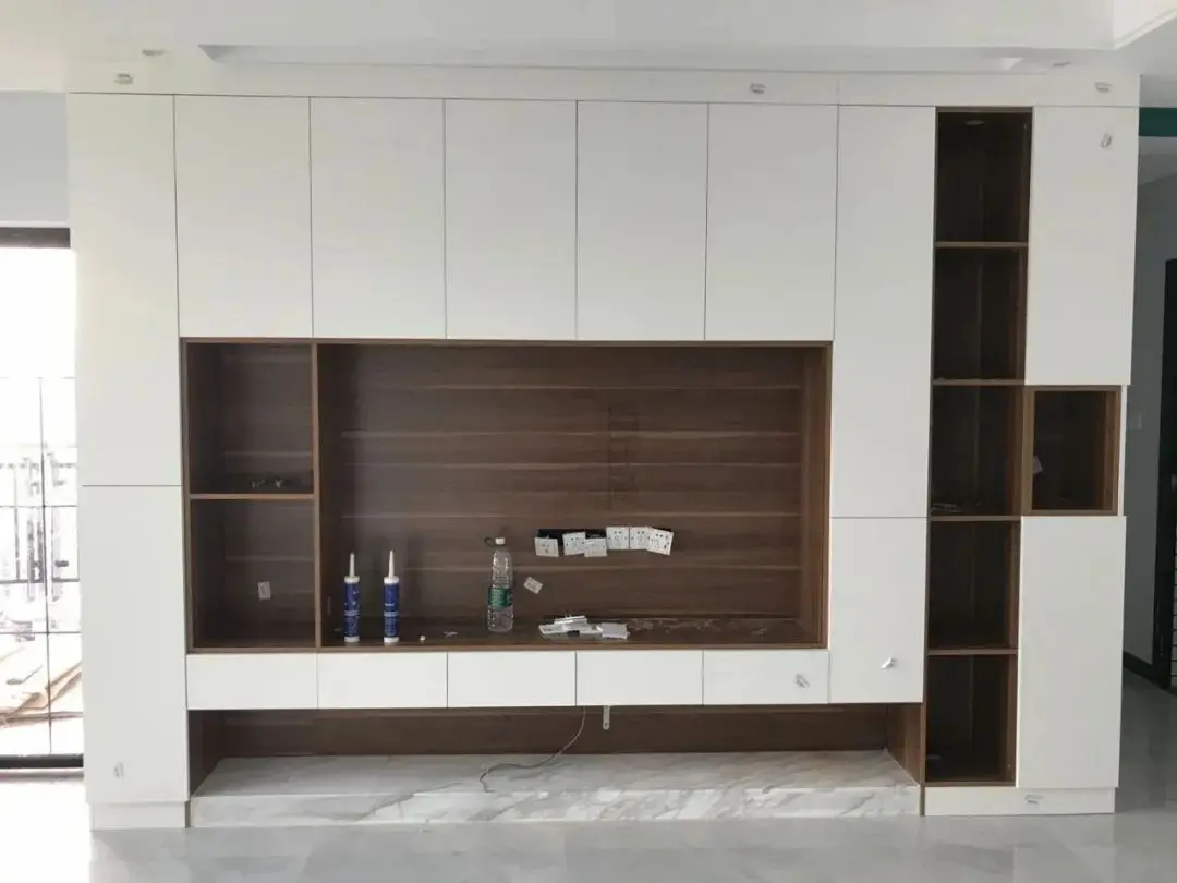 通常开发商交付的房子,柜子方面就只有橱柜与浴室柜的,不过这些柜子的质量都比较差、都是“遇水则发(胀)”的颗粒板、密度板材质,所以在定制衣柜、鞋柜的时候,预算充足的话建议把橱柜、浴室柜也换掉,换成质量好、风格自己喜欢的。