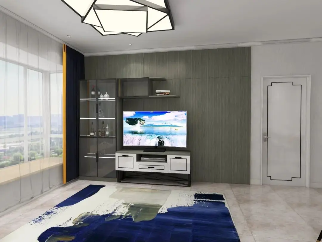 客厅电视柜、酒柜、置物架的形状也花里胡哨,全屋定制的目的难道不是要有统一感吗?