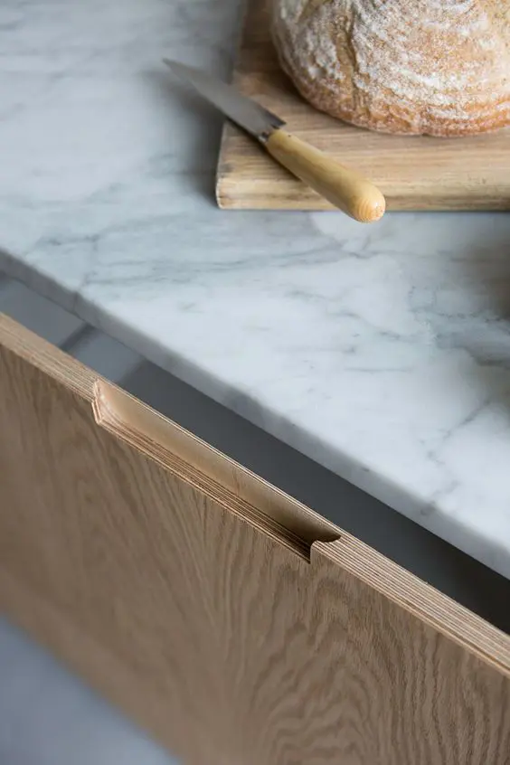 担心自己用不上力,也可以通过切割门板形成缝隙更大的凹槽拉手。