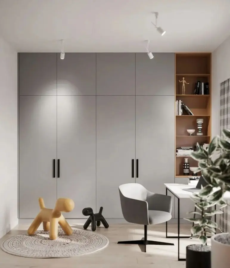 当然,也不用生搬硬套凑比例。最终还是根据自己的生活方式和喜好来,喜欢简约清爽,可全部做成柜门;喜欢展示也勤于整理的,全部做成格子也无妨。