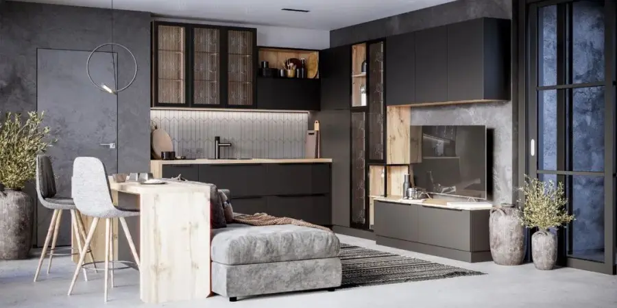 藏八露二原则应用到客厅收纳也是如此。像电视柜这种大面积的柜子,预留20%做成开放式,剩下的装上柜门就行。否则敞开太多,杂乱的物品又会直接影响客厅的整洁。