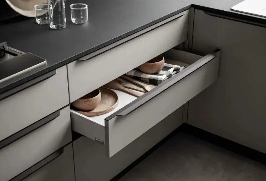 比如清洁用品就近放在水槽下,刀具放在备餐台,大锅放在灶具下的地柜里就更方便,也更符合我们的使用习惯。