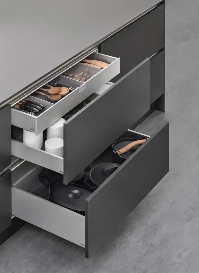 毕竟定制的最大优势,就是能让空间得到最大利用。所以,好的整体厨房设计,一定会重点解决厨房的收纳问题。