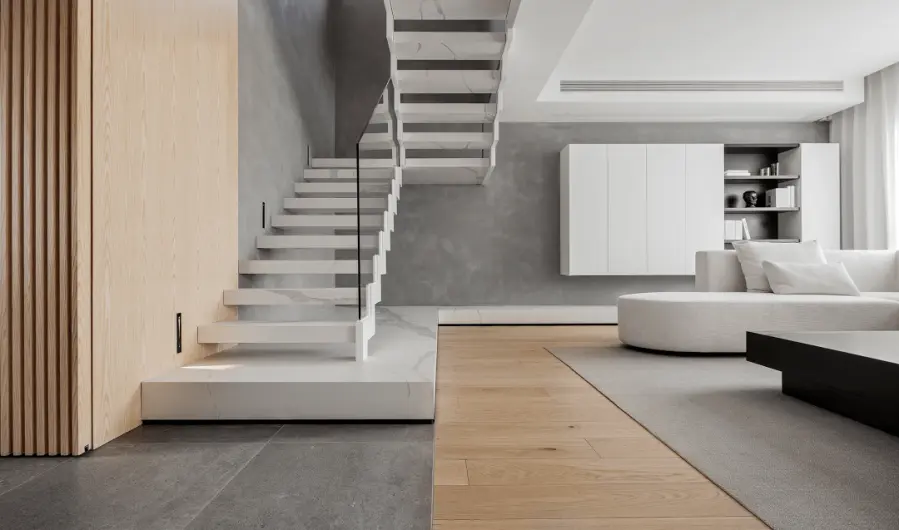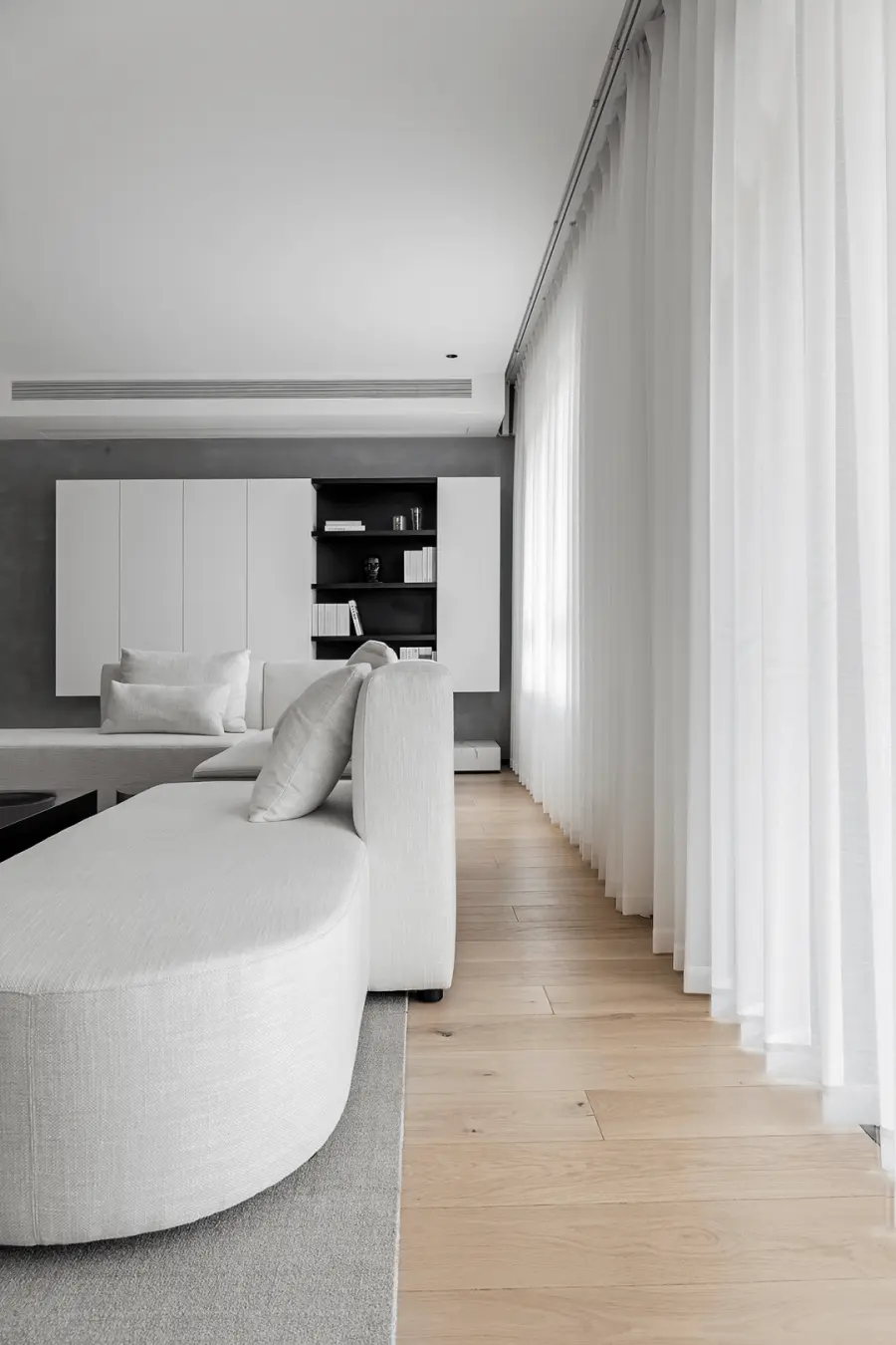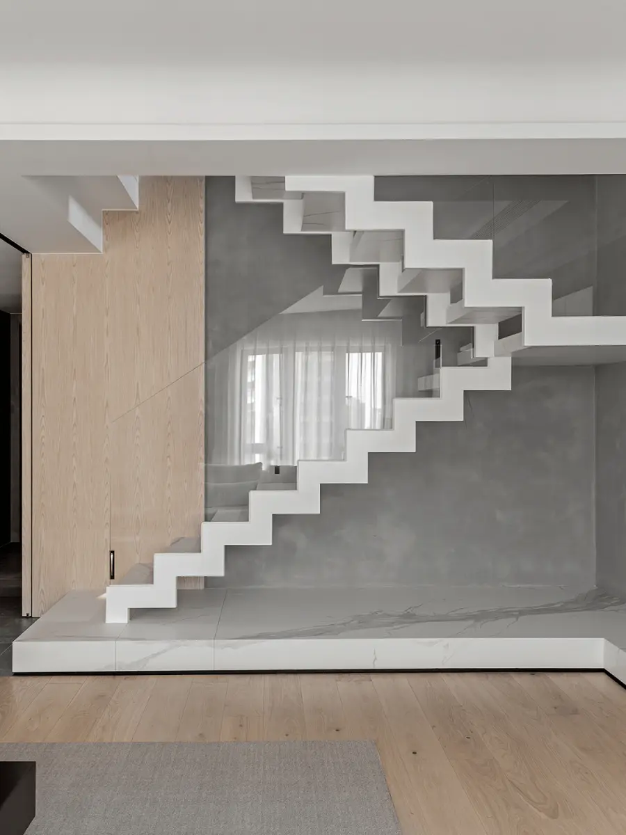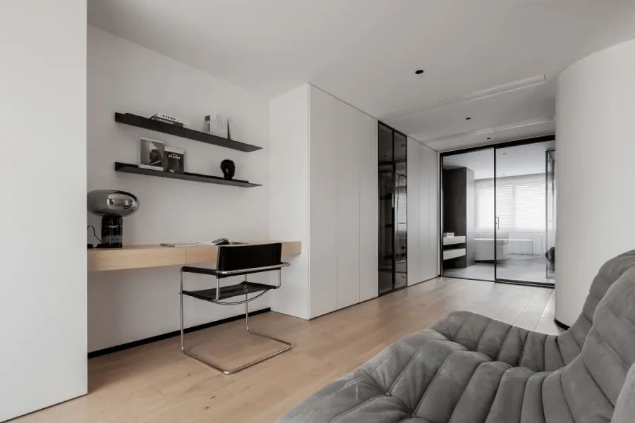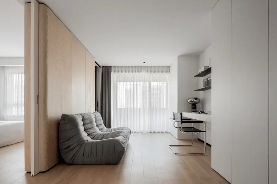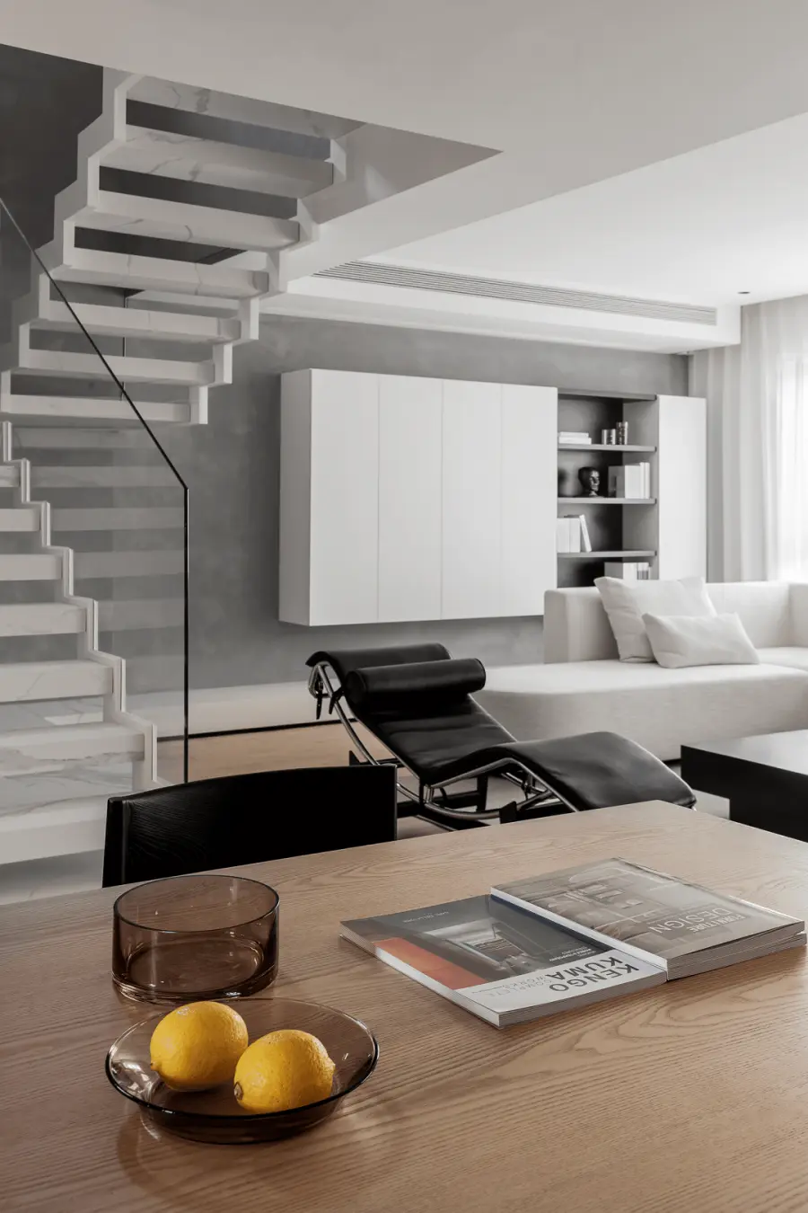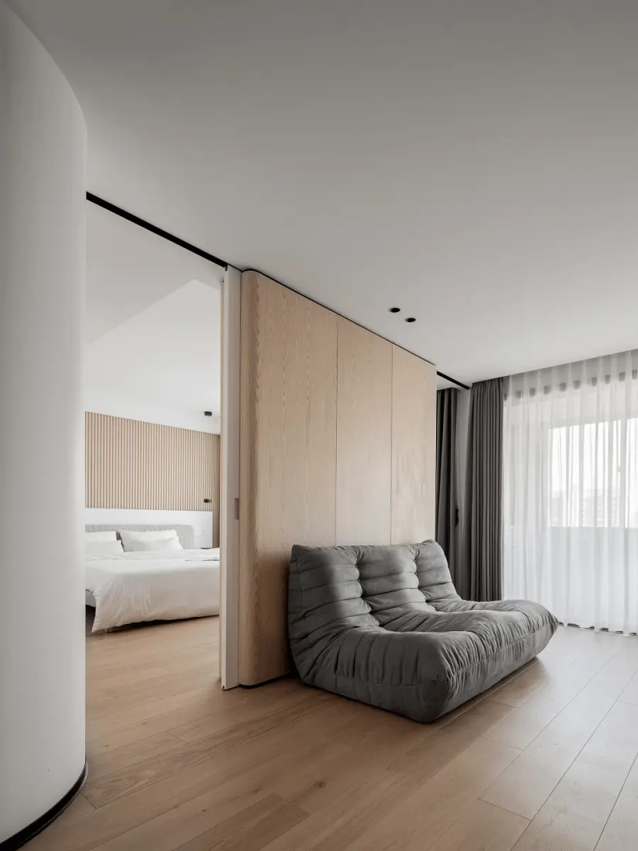 木制结构糅合在素净的空间,让界面更显连贯统一