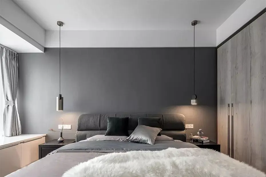 ▲ 主卧用浅灰色白色作为主基调,搭配木纹,沉静、优雅。