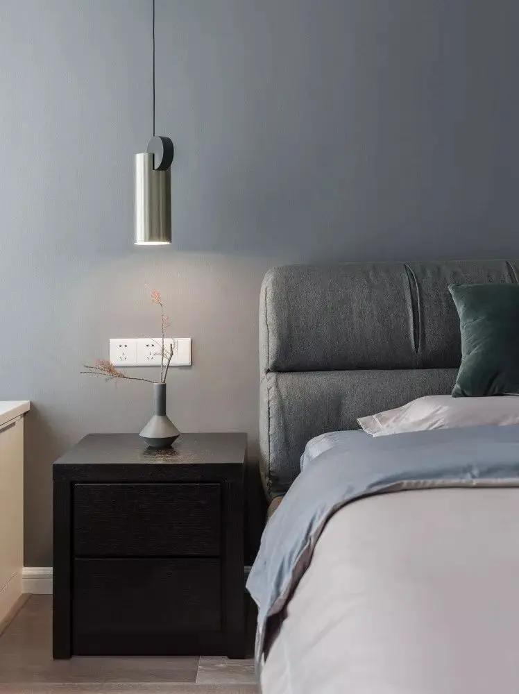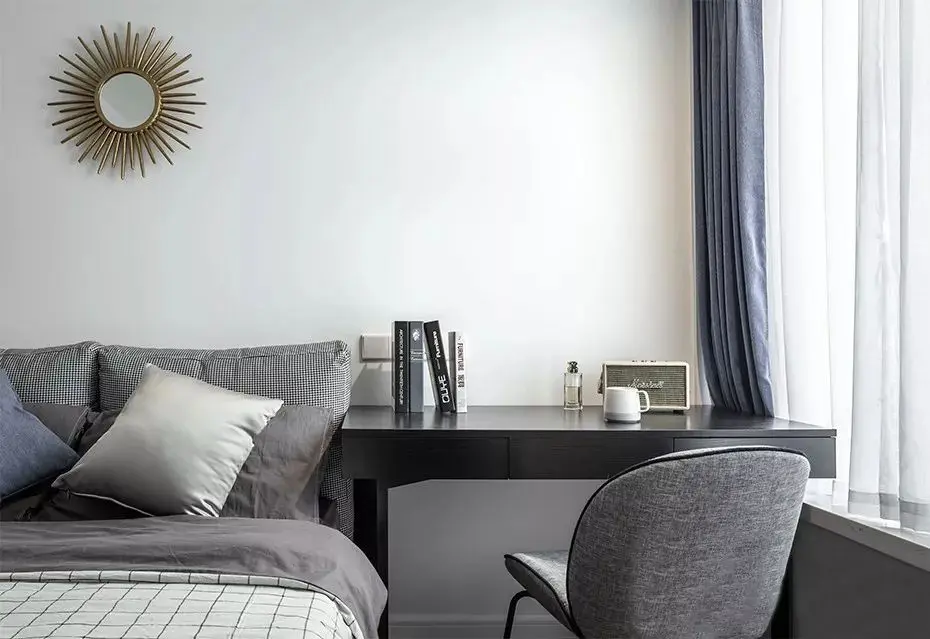 ▲ 灰白色为主调的客卧,同样用小书桌代替床头柜,拥有独立的小空间,简约雅致。