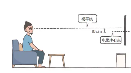 通常,电视中心点比人坐在沙发上的视平线略低10cm是最舒适的高度。