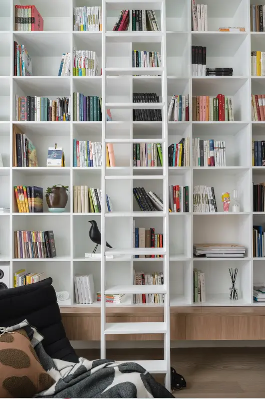深度过深,会造成空间浪费;深度过浅,书架容易前倾。而层高约32 cm的书柜,可以满足大多数图书的收纳需要。